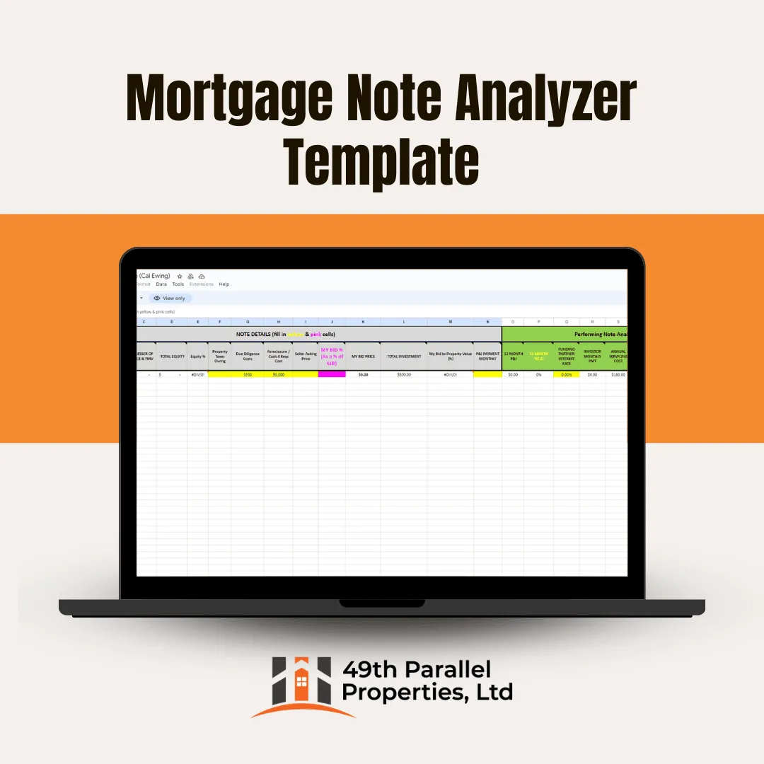 The Mortgage Note Analyzer Spreadsheet is a comprehensive spreadsheet designed to assist you in evaluating potential mortgage note investments.